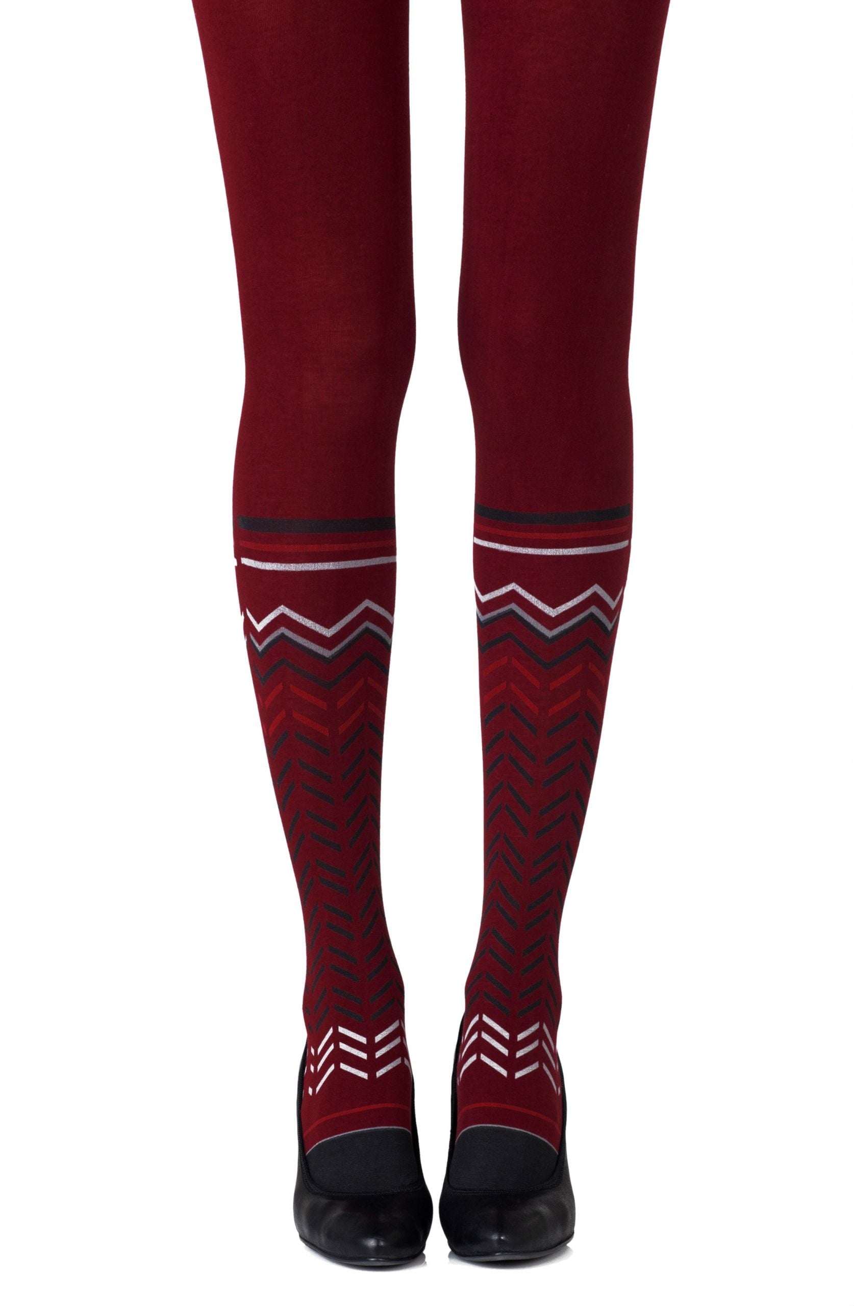 Zohara "Zig Zag Walk" Burgundy Print Tights